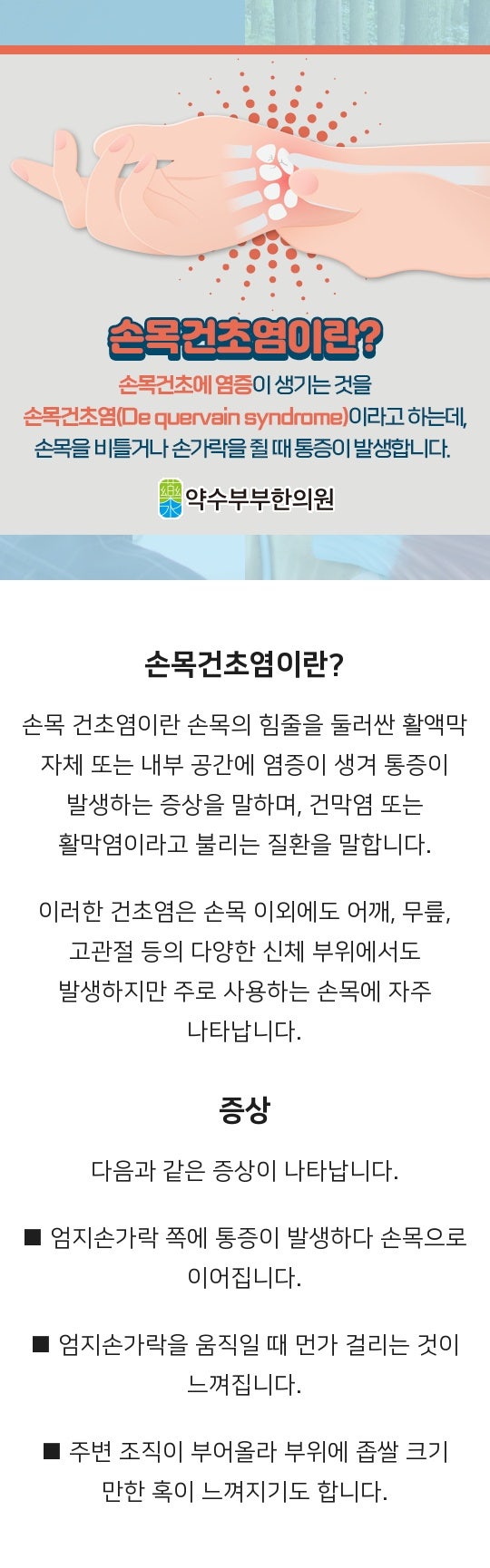손목은 가장 많이 사용하는 부위이기 때문에 다른 부위에 비해 각종 퇴행성 질환에 취약하기 때문에 컨디셔닝이 필요합니다. .손목건염 치료방법에 대해 알아보겠습니다.