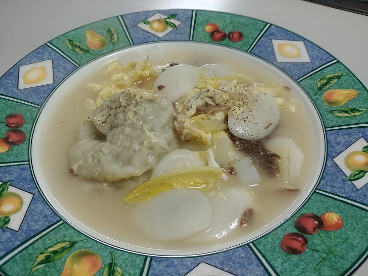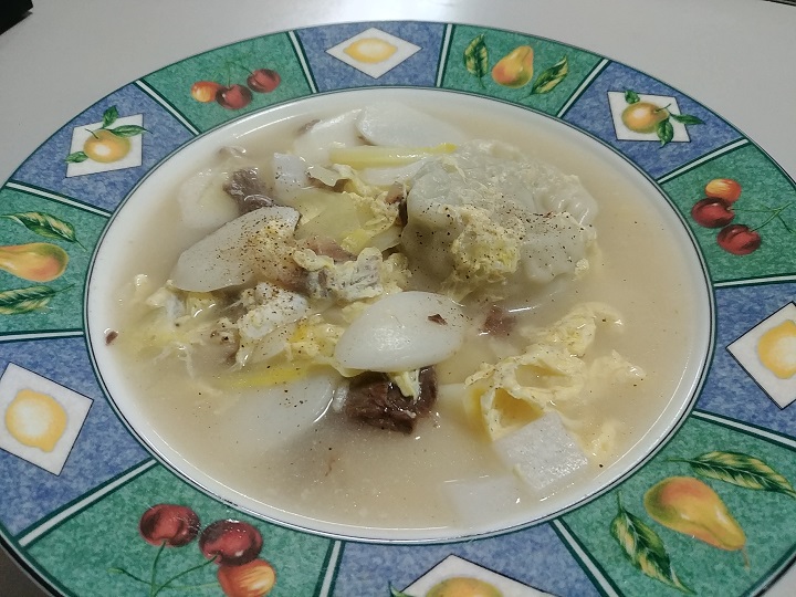 달걀을 풀고 마지막으로 참기름과 후추를 뿌린다.