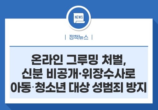 9월부터는 아동·청소년과 상습적인 성대화를 할 경우 3년 이하 징역 또는 3000만원 이하 벌금에 처해진다. 29일 아동보호법 개정안이 공포돼 사이버범죄 수사특례를 규정한 신설 ‘청소년 성행위’가 오는 9월 24일 시행된다. 여기에는 3년 이하의 징역 또는 1년 이하의 징역 또는 1천만원 이하의 벌금 또는 3천만원 이하의 벌금이 추가됩니다. 계속적이거나 반복적인 대화로 수치심이나 혐오감을 유발할 경우 3년 이하의 징역 또는 3천만원 이하의 벌금에 처한다.또한, 아동·청소년 대상 범죄에 대비해 신상공개 및 디지털 준비물 위장 수사를 허용하는 수사특례조항이 있다.