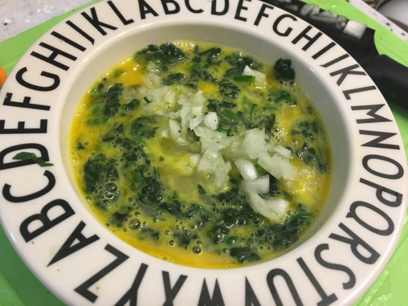 시금치 전재료 시금치 52g 쌀가루 20g 찹쌀가루 20g 오트밀 5g 물 15g 베이킹파우더 소량계란 1개