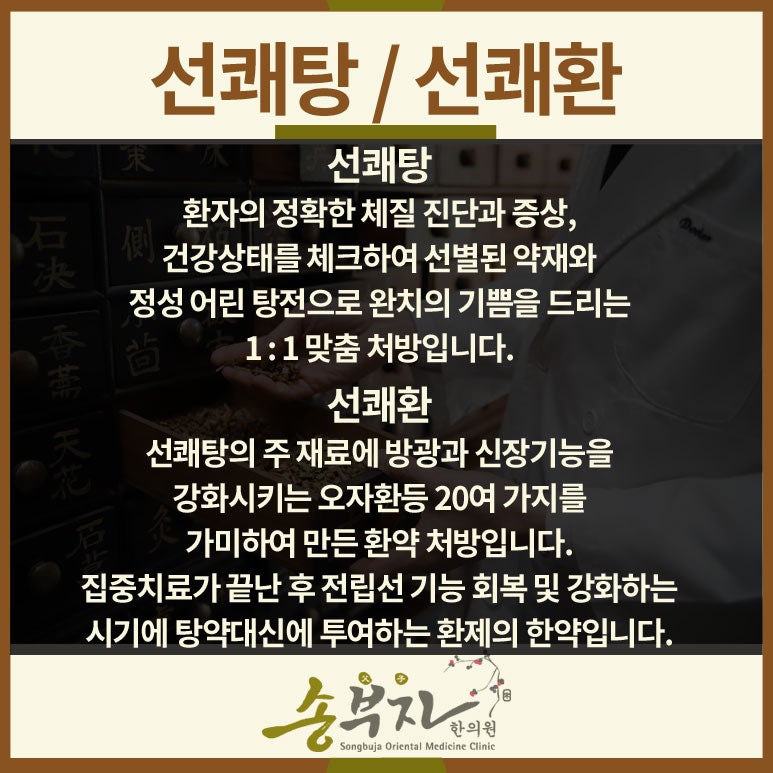 1. 소변을 너무 참지 말 것 2. 자신에게 맞는 적절한 운동을 할 것 3. 술을 가급적 마시지 말고 피로를 풀면서 생활할 것 4. 가끔 좌욕을 생활화할 것 5. 자신의 소변 색깔(진한 종이, 콜라색 소변은 위험 신호이다), 거품 발생 여부, 피가 섞여 나오는지 조사할 것 전립선염 한의원에서는 금궤신기환 처방을 가감하고 황백, 지모, 금은화, 강황 등 30가지 이상의 약재로 처방한 한약재로 전립선 치료에 뛰어난 효능을 보입니다.순수 한약만으로 처방이 이루어지고 항생제 내성에 대한 걱정이 필요 없기 때문에 전립선 치료에 있어 장기 복용에도 용이합니다.이수비뇨기는 전립선과 관련된 장기, 즉 비장, 신장, 방광을 모두 다스려 치료하기 때문에 전립선 치료에 근본 치료가 가능하다는 장점이 있습니다.