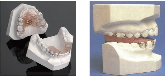 1. 금속 교정기 앞에서 언급한 바와 같이 금속 교정기는 오랫동안 교정 치료에 사용되어 왔습니다. 금속색의 브라켓을 치아 표면에 부착하고 이를 와이어로 연결하여 치아가 올바른 경로를 따라 이동할 수 있도록 도와주는 장치입니다. 장기간 사용하는 기구이기 때문에 내구성이 높고 치열의 빠른 움직임을 기대할 수 있으며 쉽게 빠지지 않는 장점이 있지만 눈에 띄거나 말을 걸기 쉽다 웃을 때 치아의 색과 많이 다르기 때문에 심미적으로 보기 좋습니다. 떨어지는 것이 유리합니다.