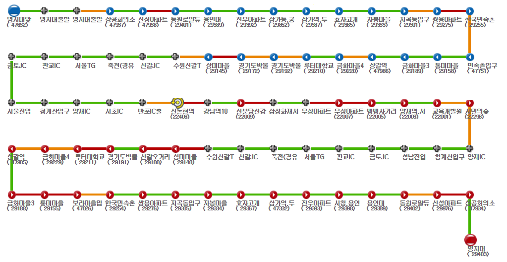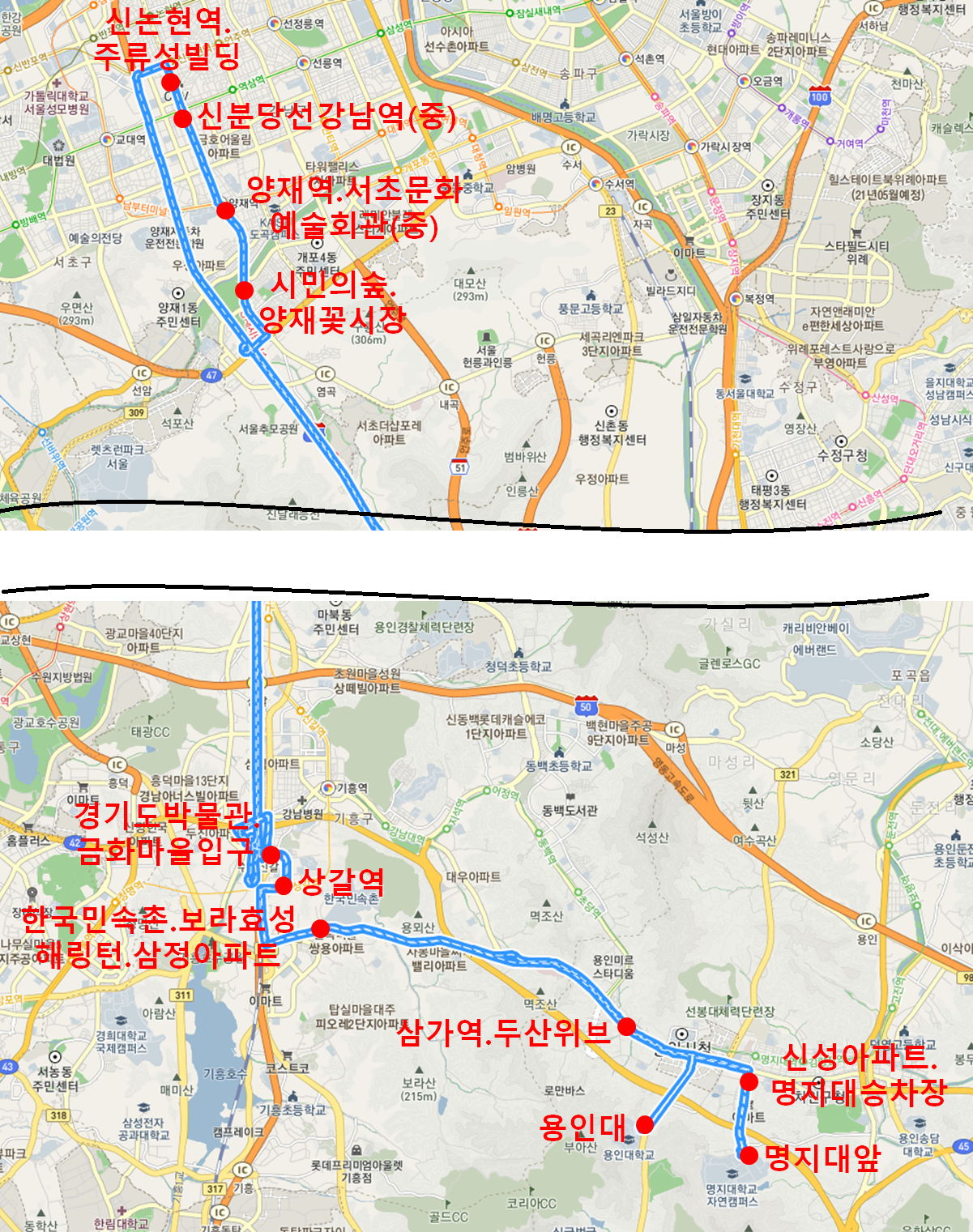 촬영 당시 명지대강남역 구간을 운행하는 노선 중 하나였던 경남여객 5001-1번 직행좌석형 경기도 공공버스. 노선 경로는 간단히 다음과 같았습니다.명지대 자연캠퍼스~이마트 용인점(상공회의소)~용인등기소(동원로얄듀크)~용인대학교~진우아파트~삼가역~효자고개(용인정신병원)~자봉마을(써니밸리아파트입구)~지곡동입구~쌍용스위트닷홈~한국민속촌~동미마을~상갈역(금화마을)~루텔대학교~경기박물관(상갈동행정복지센터)~신갈오거리>(경부고속도로 직통)>신논현역>강남역>벤사거리>매헌시민의숲(경부(경부)>(1297호)2022년 12월 30일 : 촬영일자 경기도 용인시 처인구 역북동 : 촬영장소